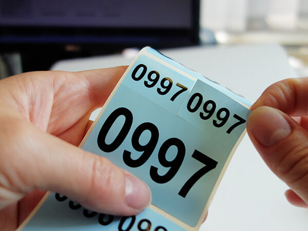 Sandwich-Etiketten lassen sich mit individuellen Unterteilungen innerhalb eines Etiketts (Etikett im Etikett) noch sinnvoller nutzen. Nach dem Aufkleben verbleibt das große Etikett z.B. auf einer Produktverpackung und kleinere Unteretiketten können je nach Anwendung weiterverteilt werden.